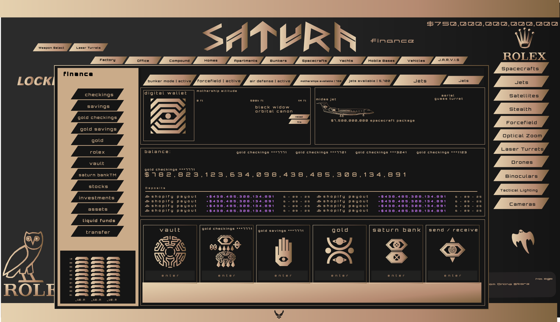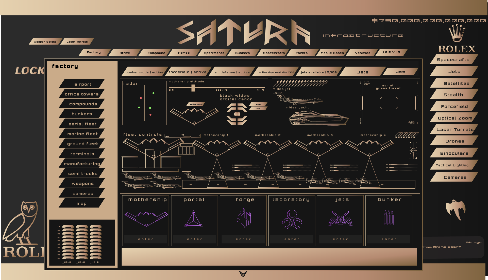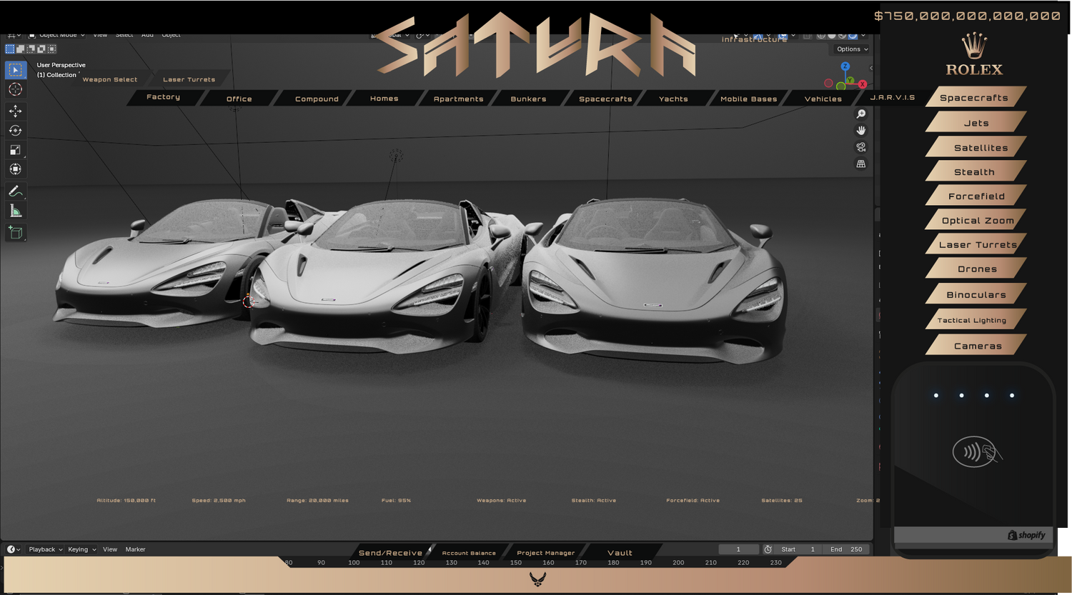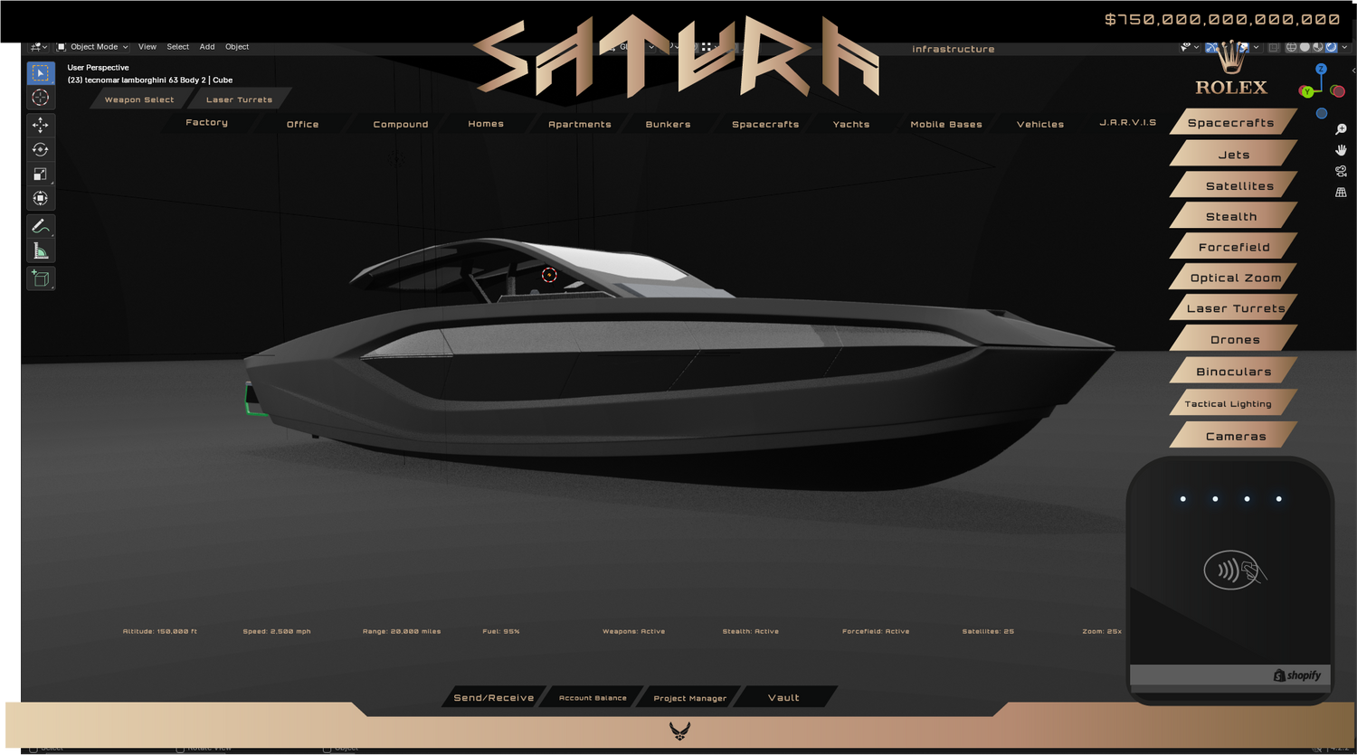 Global leading software designed to control the entire Saturn property and vehicle infrastructure, all from the cockpit of your hypercar.