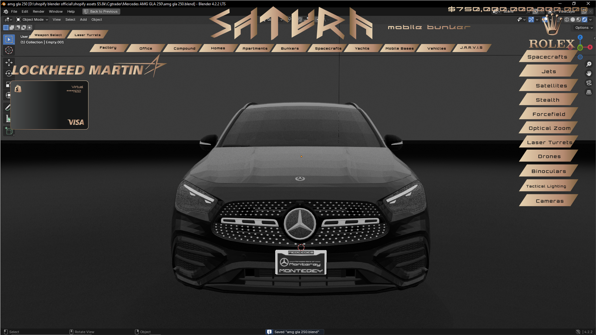 Part of the supercar Saturn Fleet, this high powered machine is equipped with custom saturn control center imported straight from our F-35 Lightning fleet.