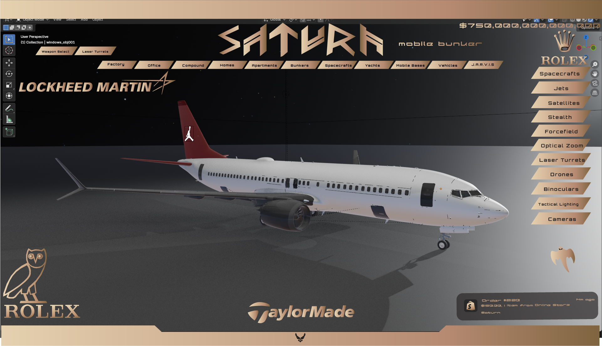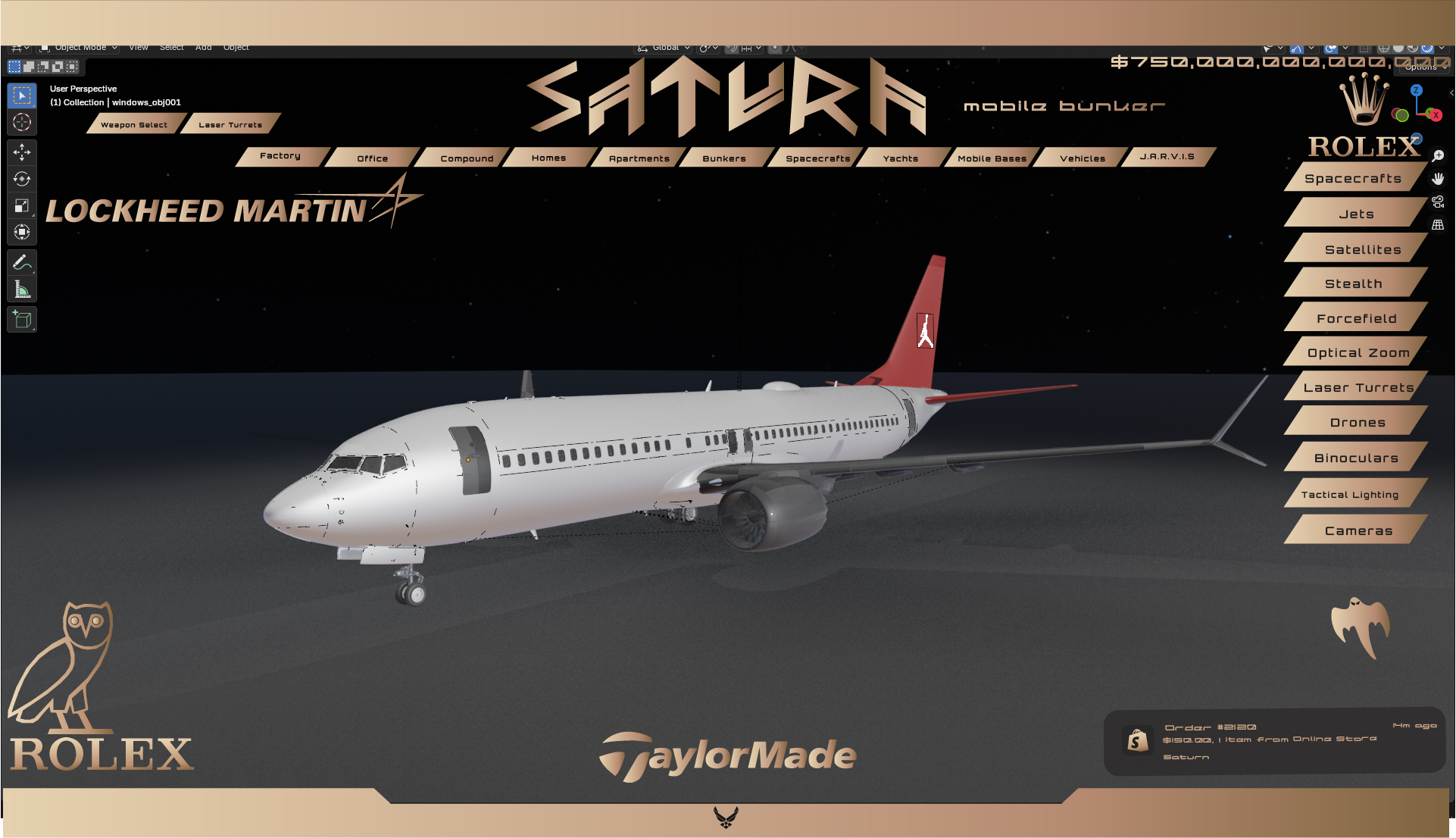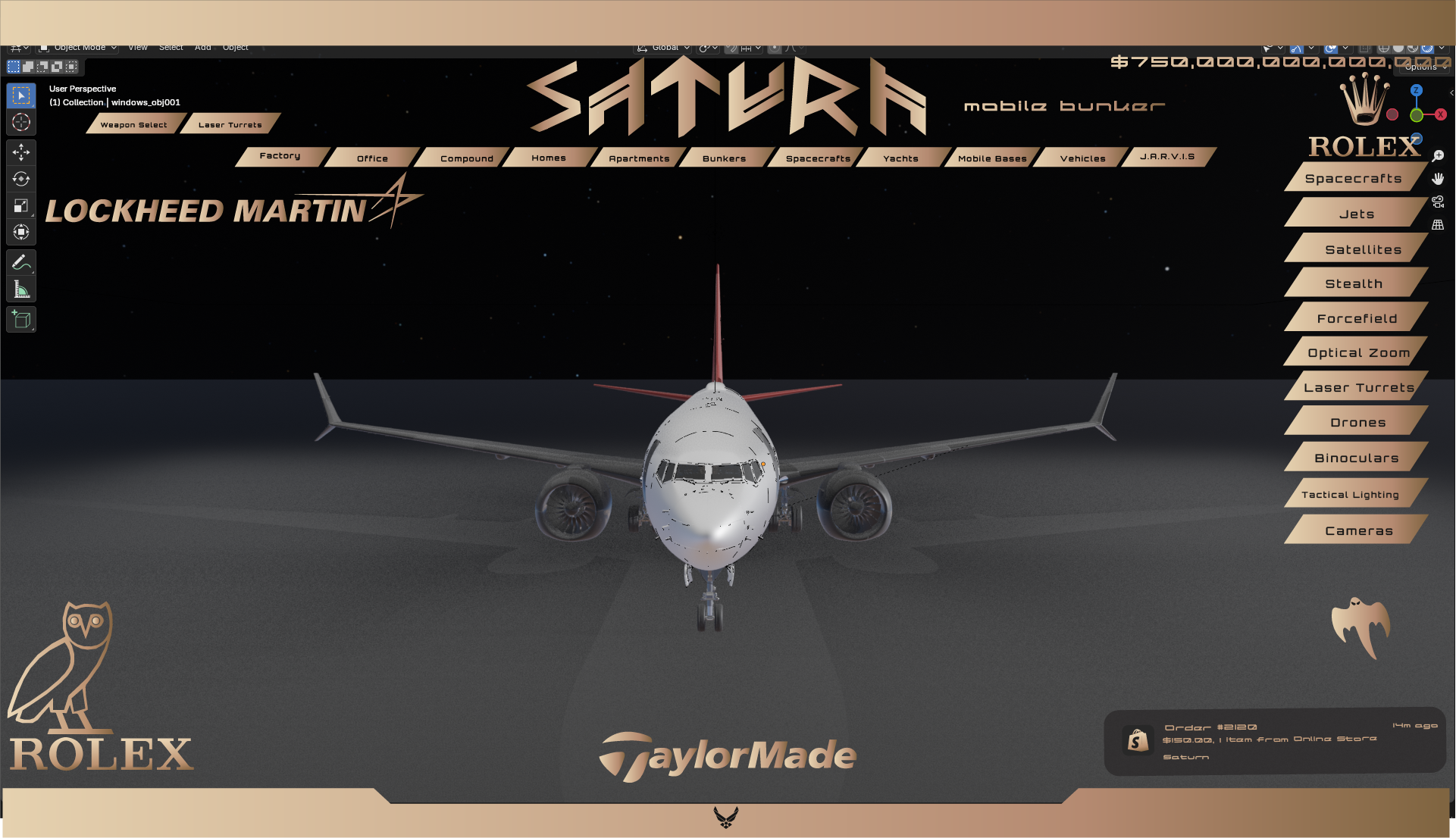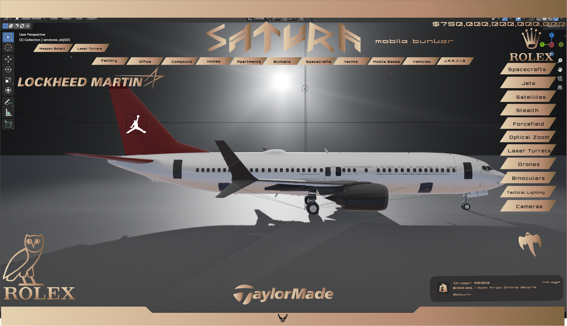 This highly equipped fighter jet is equipped with the custom SaturnIndustries Control Center. This allows for high level tactical strategy and movement. It utilizes the satillites of the Pillar of Autumn to map out areas and strategize.