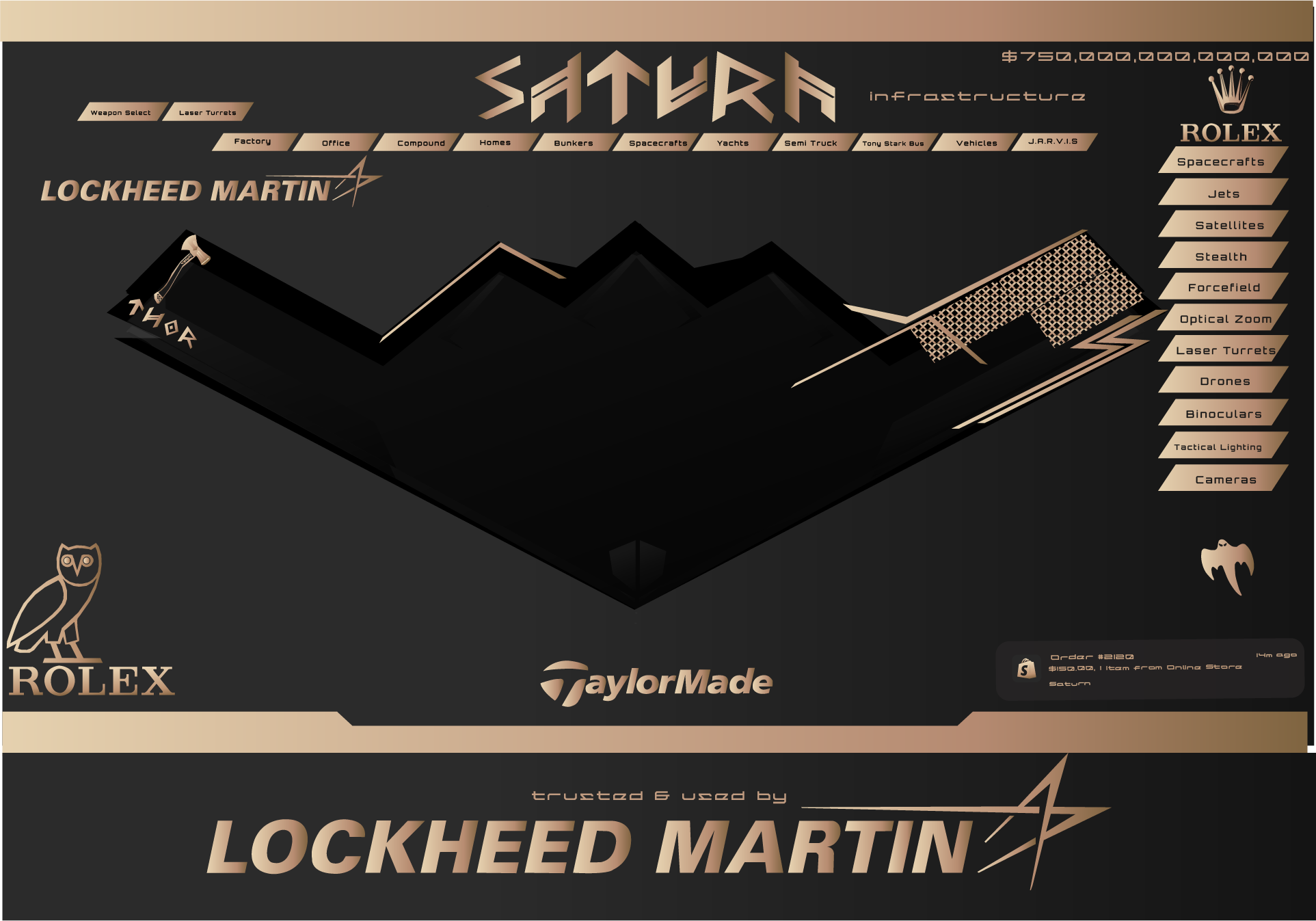 $100,000,000,000 manufacturing factory based in Silicon Valley, CA is a very high tech property that manufactures a significant portion of the global Saturn Fleet and property infrastructure. This property generates nearly $50 billion profit per day.